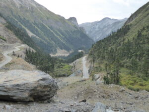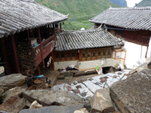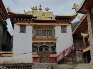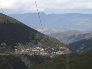From Shangri-la we headed back north towards Yading, where a rest day was planned but that all changed as did our next couple of hotel stops. Our first stop was Songzanlin Monastery, from 1679, often known as Little Potala (after the Potala in Lhasa), this is an important place of study for Tibetan culture and religious history. Leaving the monastery there was a long drive through rugged terrain to our hotel near the Yading National Park. Leaving Yading we passed the pretty Langjiling Temple. We then climbed along a “scenic” road with hairpins, taking a detour off the planned route to a small monastery (name sadly unknown). We continued towards Litang on side roads with occasional glimpses of villages and monasteries