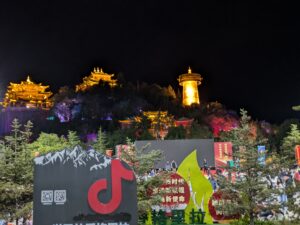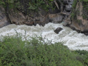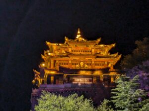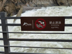 Our next stop was Shangri-La and the route was via Tiger Leaping Gorge – unsurprisingly where Tigers are said to have leapt across the gorge. At the Shangri-la hotel, Adrian complained about his brakes – so a pad change in the car park, later on we wandered to the centre, all lit up and people dancing