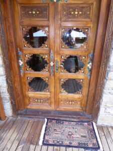 Litang had a different feel from other places we’d been to. There were police posts on junctions and groups of men standing around on the opposite corner. Off the main street was an attractive cluster of older buildings, one the birthplace of the seventh Dalai Lama, and a couple of ladies in traditional dress Our hotel seemed to be a traditional local building with sturdy timbers and elaborate doors