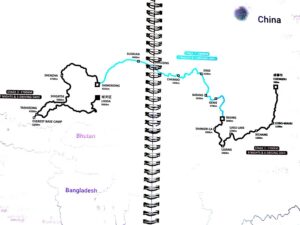 Our first day on the road was to Leibo and my first navigation error at a motorway intersection as I was following the wrong mapping app (see Technicalities). Lunch brought its own problems as we could not read the restaurant signs – so they gave us photos of the shop front in future but messed that up on day 2 by sending us to one location with a photo of another restaurant in the same town with the same name! After the motorway we were on ordinary roads with plenty of aggressive overtaking on roads cluttered with cars, lorries and bends. See the map, we started in Chengdu (top right) far west and south to Everest before returning east to Lhasa